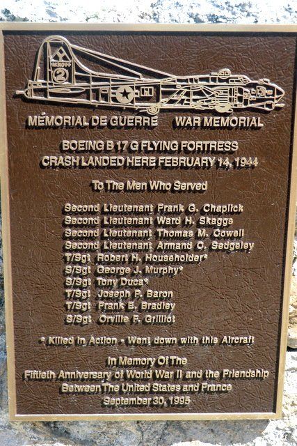 At Chaplick’s order, Bradley and Grilliot worked to lighten the load, throwing overboard as much equipment as possible. In the sight of the field at Calvi, a third engine quit and Chaplick had no option but to ditch, with the aircraft landing in the sea about 100 yards offshore. Except for the pilot and the co-pilot, the remainder of the crew gathered in the radio compartment with two of the dead for the ditching. Sedgeley, the bombardier, tried to get Tony Duca out of the tail turret to apply first aid but found him dead. That’s the way Frank G. Chaplick landed the B-17 on the water, very close in front of the Calvi’s citadel. The plane didn’t break during the operation and floated a few minutes, which enabled crew to evacuate it, except for the three machine gunners killed during the attack and whose bodies sunk with the wrecks. The crew managed to deploy and get into the life rafts but were unable to bring the three dead crewmembers with them.