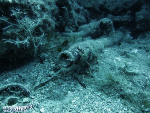The dive site is located by GPS, as there is no anchoring and, the dive is the first dive of the day. Due to the depth and the difficult diving conditions (poor visibility and currents sometimes) on this dive site, it is recommended for experienced divers only!