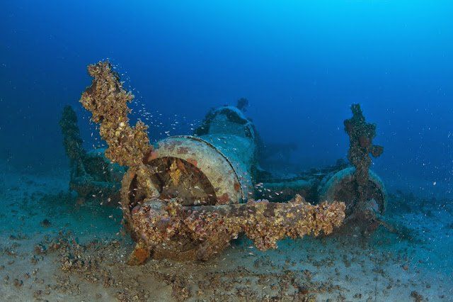 El fuselaje de la aeronave se ha modificado a lo largo de los años debido a los fuertes revestimientos bentónicos. Las dos alas del avión son visibles en su lugar. Además del cuadro podemos ver los depósitos de combustible y las ruedas que se han mantenido en posición de vuelo. Los instrumentos, el panel de la cabina, se han mantenido lugar, aunque el intenso recubrimiento bentónico no los hace muy visibles.